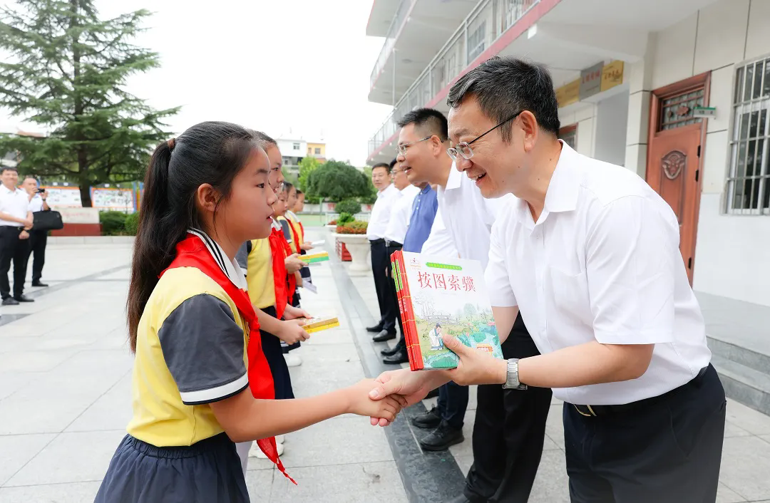 中国社会科学院院长、党组书记高翔向丹凤社科希望小学捐赠图书 本网记者 王宙/摄